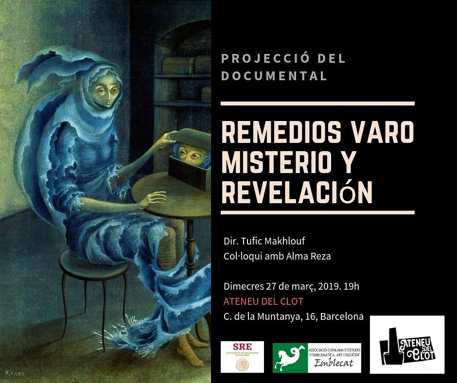 Pues bien, el próximo miércoles 27 de marzo del 2019 a las 19:00 horas tendrá lugar la proyección de la película "Remedios Varo, misterio y revelación" en el Ateneo del Clot que se encuentra ubicado en el número 16 de la Calle de la Montaña, en el Barrio del Clot de Barcelona. Es un documental dirigido por Tufic Maklouf y que contará con un coloquio en el que participará la historiadora, archivista, profesora de paleografía, gestora cultural, documentalista y dinamizadora literaria mexicana Alma Reza.
