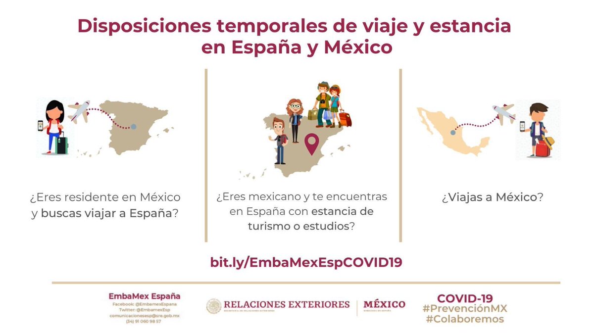 Mucha gentre nos pregunta en las redes sociales de Mexicanos en España si ya se puede viajar de México a España y nosotros invariablemente los remitimos, tanto a la mencionada página de la Embajada de Mexico en España como tambien a la del Consulado General de España en México, ya que en ambas se puede encontrar información muy importante y, sobretodo actualizada, que nos aclara si es posible y cuales son las restricciones para poder viajar entre los dos países.